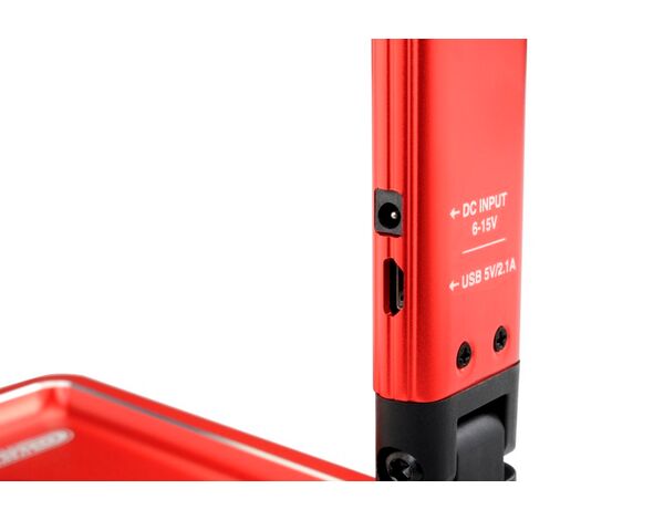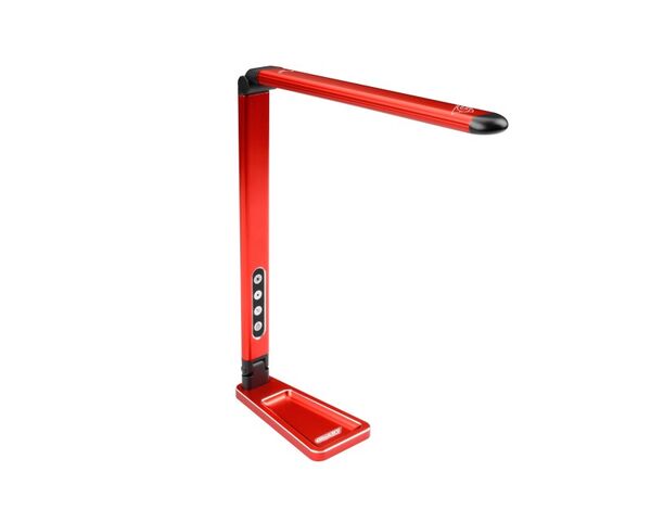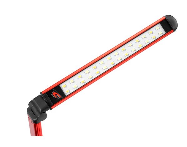 C16310 Team Corally LED Arbeitsplatzlampe Rot Team Corally's aluminum LED Folding Pit Light features convenient touch sensitive controls with three adjustable light color modes and six adjustable brightness/dimming levels for a wide range of lighting choices. Utilizing clean, LED light technology, and 32 high power LED's, this light is ideal for general illumination. Plus, it uses only 11 watts of power or less to provide the light equivalent of a 100 watt incandescent bulb. The unique light also features a stylish folding and rotatable design with adjustable joints that can be placed in almost any position without tightening or loosening knobs or screws. Simply move the light to where you need it and the lamp will hold that position. Features: o 270 Degrees adjustable lighting angle o Convenient touch sensitive controls o Three adjustable light color modes (3.000K, 3.500K and 4.000K) o Six adjustable brightness / dimming levels o Light output from 180 to 600 lumens o Foldable desi