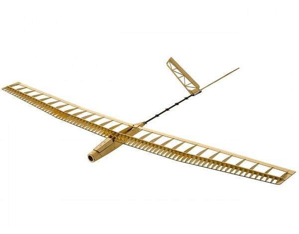 Holzbaukasten (Lasercut) aus ausgesuchtem Balsa- und Flugzeugsperrholz. Das Modell verfügt über ein V-Leitwerk und wird über Seiten- und Höhenruder gesteuert. Das niedrige Abfluggewicht bietet z.B. auch wunderbare Thermikflüge.
