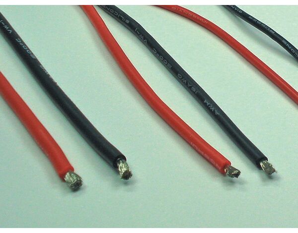 Je 1,0m rot und 1,0m schwarzes, sehr geschmeidiges Silikonkabel in Erstausrüsterqualität