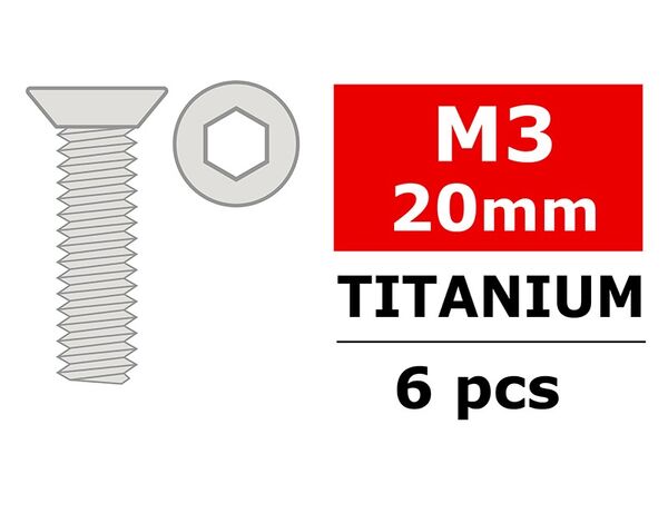 C34016 Team Corally - Titanium Screws M3 x 20mm - Hex Flat Head - 6 pcs