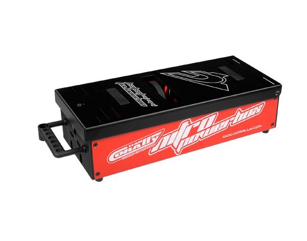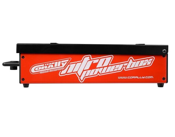 The Team Corally professional 1/8 Off-Road Nitro Powerbox. Powerful, affordable, reliable. The Nitro Powerbox is developed to provide 1/8 scale off road enthusiasts with a starter box that exceeds expectations. Breaking in a new engine? Tight engines are no match for the Nitro Powerbox. With the twin 6300 RPM - 750 size motors, the Nitro Powerbox delivers the power needed to turn over the most stubborn engines.