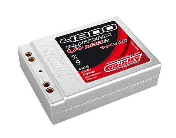 C48345 Team Corally - Platinum V+ 100C - 4800 mAh - 7,4V 2S - Competition Li-Po Battery Pack - Stick SQUARE Hardcase - Dual Gold Connector 4mm