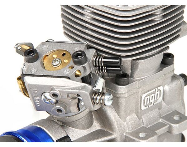 Kompakte Einbaumaße und niedriges Gewicht zeichnen den NGH GT-35 Benzinmotor aus. Durch den vorne platzierten Vergaser ist der Motor auch für den Einbau unter schmalen Motorhauben bestens geeignet.
