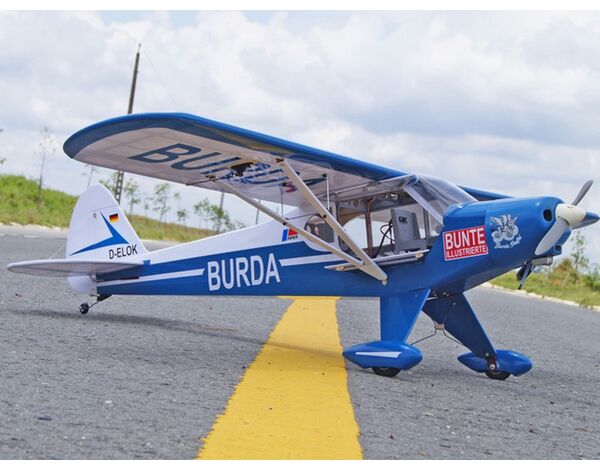 Besonderen Wert wurde bei der Entwicklung dieser Piper Super Cub auf möglichst originalgetreue Wiedergabe gelegt. Entstanden ist eine wunderschöne Piper Super Cub die vor allem auch durch hervorragende Flugeigenschaften überzeugt. Das Modell eignet sich perfekt für Elektronantrieb. Wahlweise ist aber auch der Einbau eines Verbrennungsmotors mit ca. 7,5 - 11,cc Hubraum möglich. Die Piper Super Cub glänzt mit vielen weiteren innovativen Merkmalen. Auf der rechten Rumpfseite befindet sich eine riesige, doppelt aufklappbare (magnetische) Türkonstruktion für einfachen Zugang z.B. für den Akkuwechsel. Das serienmäßige Fahrwerk wurde dem Original nachempfunden. Wenn das Modell auf unbefestigten Pisten geflogen werden soll, können jederzeit größere Räder (ohne Radschuhe) montiert werden. Das Modell eignet sich auch sehr gut für den Wasserflug oder Winterflug auf Schnee; passende Schwimmer hierfür finden Sie in unserem Sortiment.