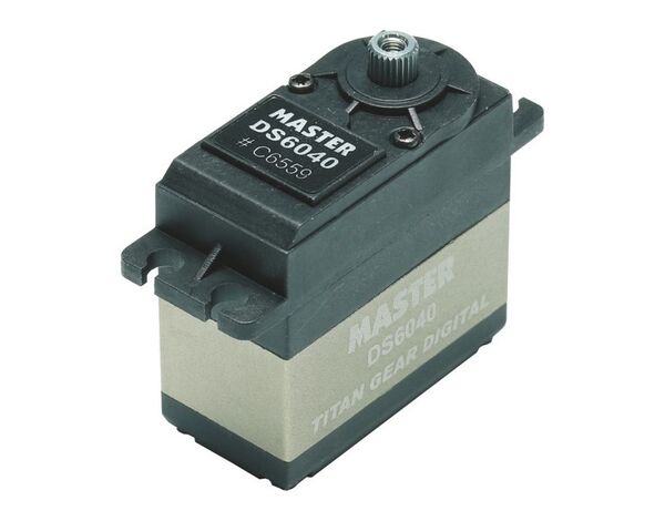 Hochleistungsservo in Standardgröße für mittlere bis größere R/C Modelle, 6-fach verschraubtes Gehäuse, Gehäusemittelteil aus Aluminium und Getriebe aus Titan. Baugleich mit Servo DS6030 TG jedoch mit höherer Stellkraft bei etwas reduzierter Stellgeschwindigkeit.