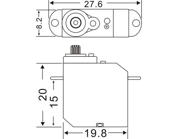 Micro Servo für kleine Flugmodelle sowie Hallenflug bis etwa 200g. Ausgestattet mit einem besonders robusten Titangetriebe und Glockenanker (Coreless) Motor.