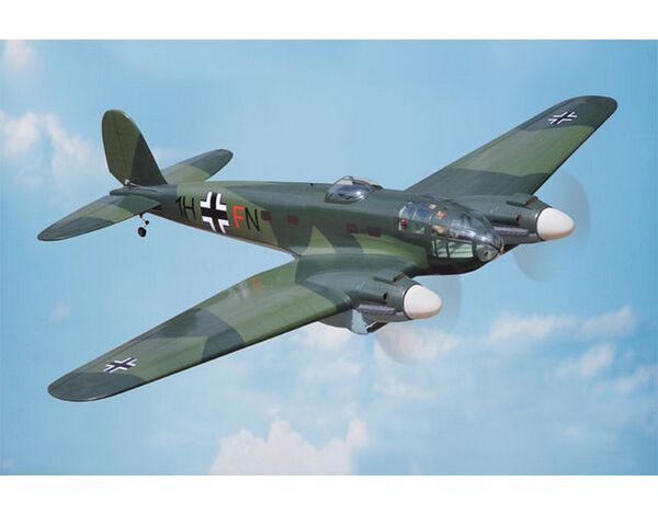 Originalgetreue Nachbildung des zweimotorigen Tiefdeckers der Ernst Heinkel Werke in Rostock. Die Maschine wurde in den 30er Jahren als schnelles Verkehrsflugzeug für die Lufthansa eingesetzt und konnte 10 Passagiere befördern. Im zweiten Weltkrieg wurde die HE 111 häufig als Bomber eingesetzt. Das Modell wurde für Elektroantrieb entwickelt, kann wahlweise aber auch mit zwei Verbrennungsmotoren ausgestattet werden.