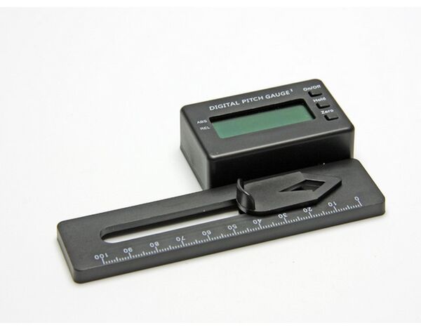 Digitale Pitch Einstellehre mit kontraststarker LCD Anzeige und einfacher Bedienung. Wenn Sie die Vorzüge eines digitalen Meßschiebers zu schätzen wissen, dann werden Sie die digitale Pitch Einstelllehre lieben. Betriebsspannung = 3V/DC, 2 x Knopfzelle Typ CR2032 Stromkonsum = 3mA Auflösung = 0.1° Betriebstemperatur = 0 bis +40°C Abmessungen = (L x B x H) = 60 x 37 x 16mm (Meßgerät) bzw. 120 x 68 x 6mm (Halteplatte)