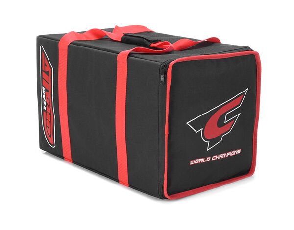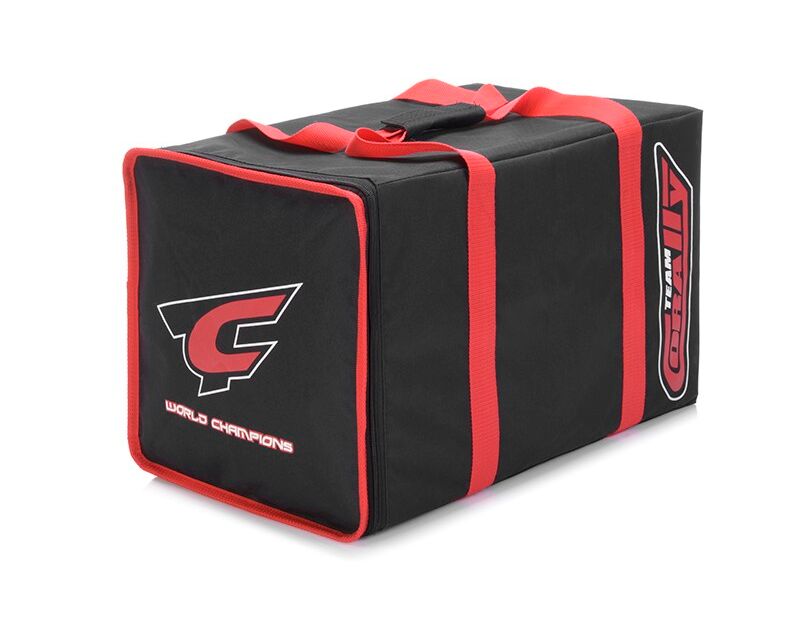 Team Corally - Carrying Bag is made to resist wear and endure all those trips to and from the track and beyond. The cover itself is made from a durable nylon thick enough to resist tearing andeveryday use. Silk-screened printed factory team logos embody the bag throughout.