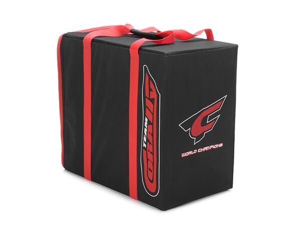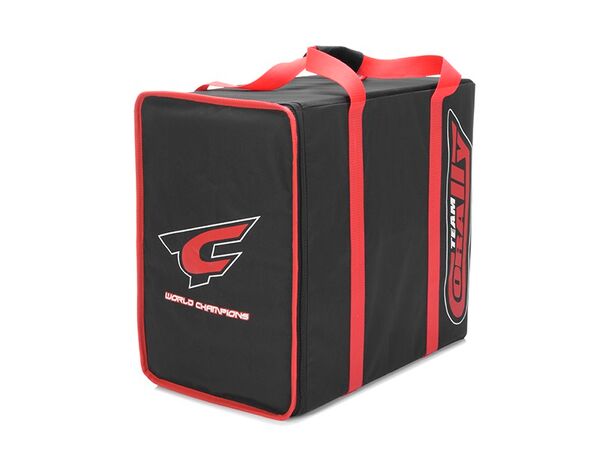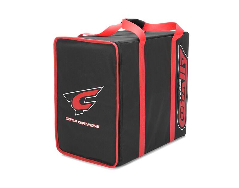 Team Corally - Carrying Bag is made to resist wear and endure all those trips to and from the track and beyond. The cover itself is made from a durable nylon thick enough to resist tearing andeveryday use. Silk-screened printed factory team logos embody the bag throughout.