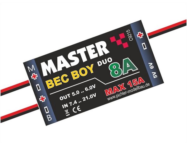 Hochwertiger Spannungsregler der BEC BOY Serie. Ideal zur Empfängerstromversorgung mit integrierter Akkuweiche zum Anschluss von 2 Akkus.