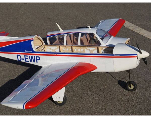 Seit über 60 Jahren wird die Beechcraft Bonanza gebaut und ist damit das meistgebaute Reise- und Geschäftsflugzeug weltweit. Bei der Modellumsetzung haben wir bewusst auf ein V-Leitwerk verzichtet, um einfaches Handling zu gewährleisten. Ein elegantes, sehr gut fliegendes Modell.