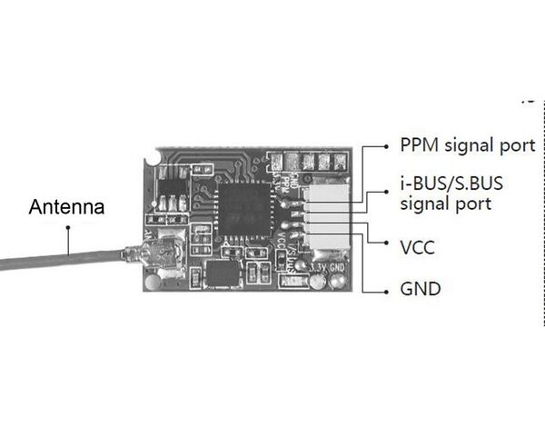 C9295 Pichler MASTER Multicopter Empfänger MR1 1,7g Empfänger für Multicopter im Micro-Format! Technische Daten System = 2,4Ghz AFHDS 2A Kanäle = 8 (PPM), 18 (i-Bus) RF Bereich = 2.408 - 2.475 Ghz Bandbreite = 500 Khz RF Kanal = 135 Empfangsempfindlichkeit = -92dBm Modulation = GFSK DSC Ausgang = PPM / i-Bus / S.Bus Antennenlänge = ca. 25mm Betriebsspannung = 4.0 .. 8,4V Betriebsstrom = 40mAh Kanalverzögerung = <15ms Größe = ca. 20 x 14 x 5mm Gewicht = ca. 1,7g inklusive Antenne (1,2g ohne Antenne) Reichweite = über >300m (1 Meter über Bodenhöhe)