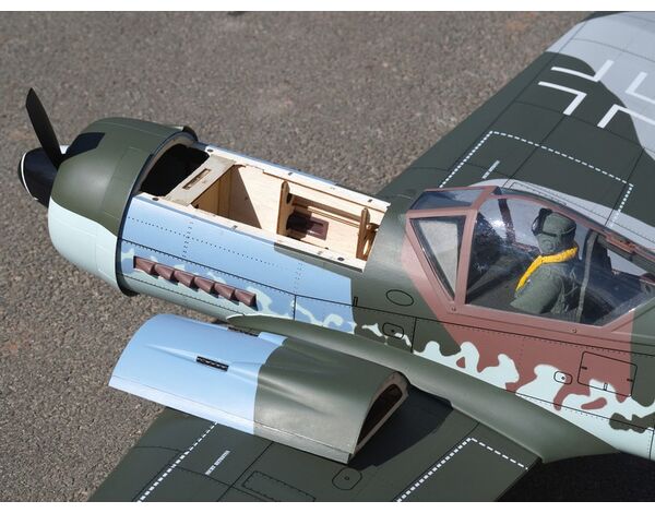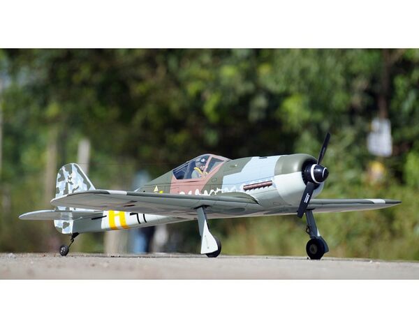 Die Focke Wulf Fw 190 D (Spitzname "der Würger" oder "Langnasen Dora") ist im Original ein deutsches WW2 Jagdflugzeug. Die bei Focke-Wulf in Bremen unter der Leitung von Kurt Tank entwickelte Maschine wurde ab Anfang der 40er Jahre von der Luftwaffe als zweiter Standardjäger neben der Messerschmitt Bf 109 verwendet. Das Modell wurde für moderne Brushless-Elektroantriebe konstruiert, kann aber auch mit einem Verbrennungsmotor z.B. Benzinmotor NGH GT-9 ausgerüstet werden.