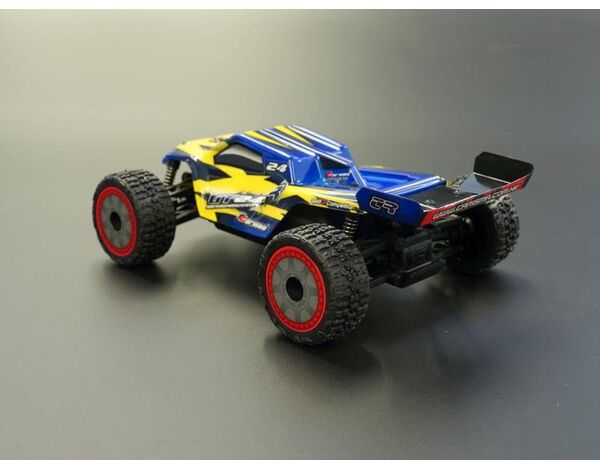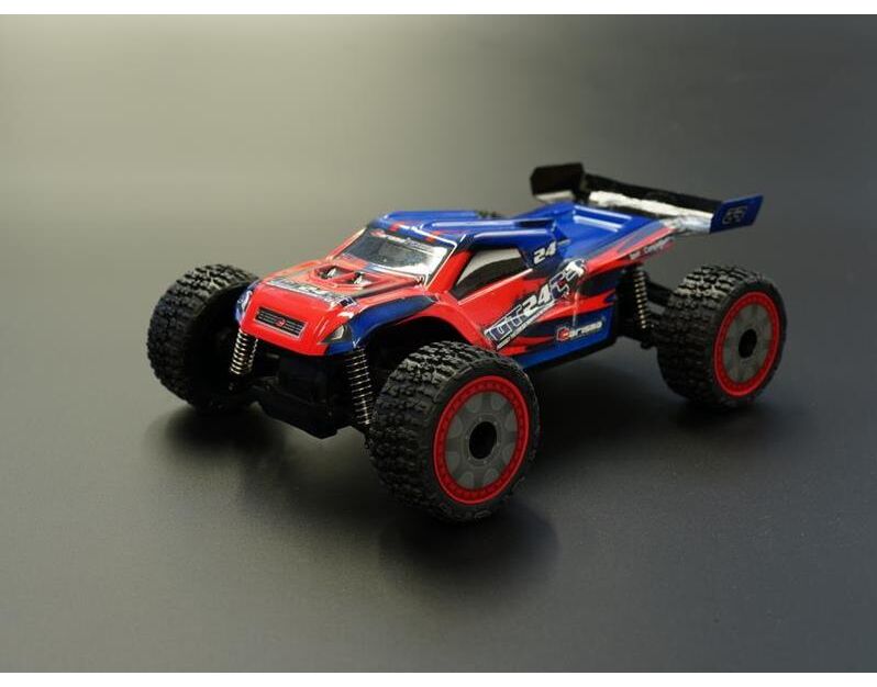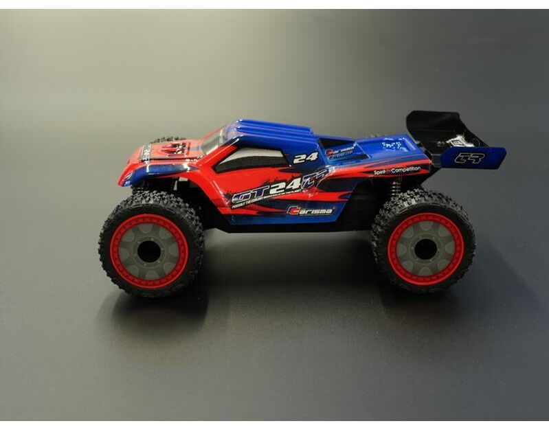 The GT24TR from Carisma is a 1/24-scale RC Truggy that comes with an 8000Kv brushless motor and four wheel drivetrain. It features a friction damper, rubber tyres and screen-printed body shell and wings.