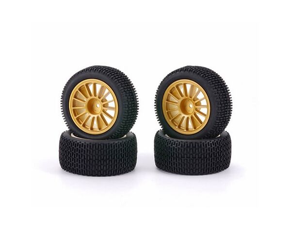 CARISMA M48S DIRT SPEC TYRES MOUNTED GOLD MULTISPOKE WHEELS (4)