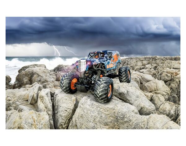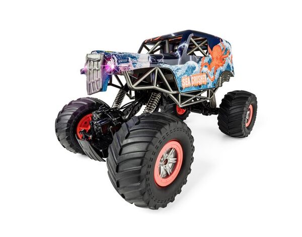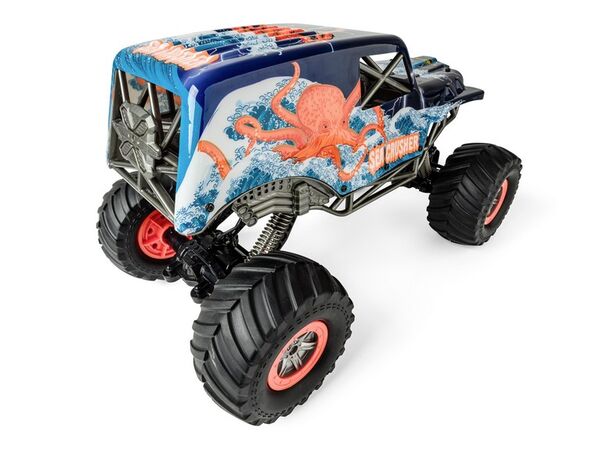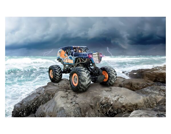 Im Gelände und zu Wasser: Mit dem Sea Crusher ist nicht nur das Fahren im Gelände, sondern auch das Fahren und Schwimmen auf und im Wasser möglich! Der 4-Radantrieb, die Vollfederung und die extrem verschränkbaren Radachsen machen das Fahrzeug zu einem wahren Multitalent. Für perfekte Ausleuchtung im Dunkeln sorgt die LED-Beleuchtung an der Front. Mit einer Ladezeit von knapp 4 Stunden lässt der LiIon Akku eine ansehnliche Betriebsdauer von 20 Minuten unter Volllast zu. Dem Fahrzeug liegen eine 2.4 GHz Fernsteueranlage, ein 7.4 V/1.200 mAh LiIon-Akku, ein USB-Ladegerät, 3x AA Senderbatterien, sowie eine ausführliche Anleitung bei.
