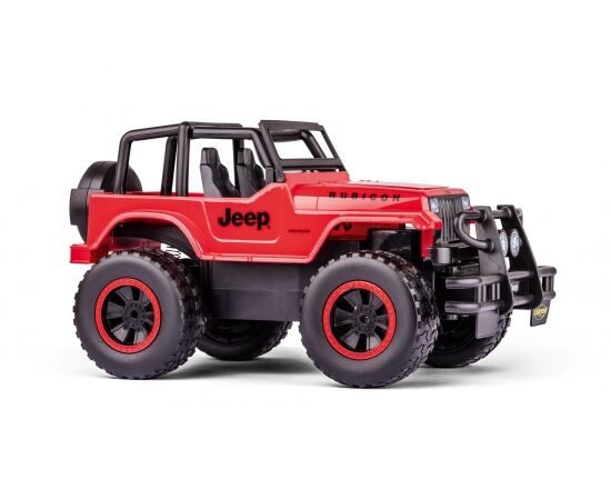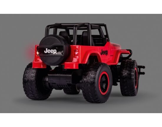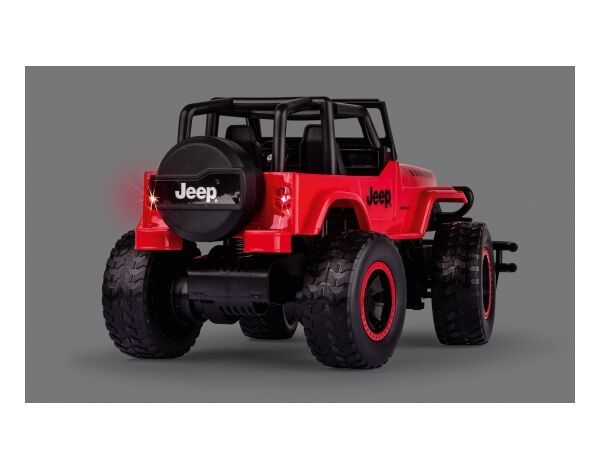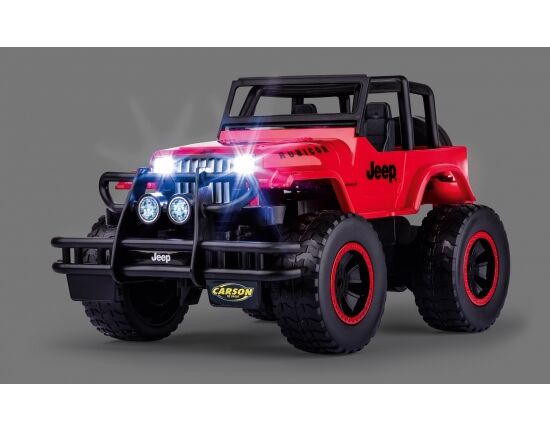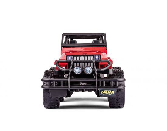 Mit dem CARSON Jeep Wrangler im Maßstab 1:12 meisterst du fast jedes Gelände! Der trendige Offroader beinhaltet viele Details mit neuester Technik wie die störungsfreie 2,4 GHz Mehrkanalfernsteuerung mit der du alle Funktionen des Jeep steuern kannst. Ein kräftiger Elektromotor treibt den Jeep über die griffigen profilierten Geländereifen an. Der Frontrammer sorgt für einen bulligen Auftritt. Front- und Heckleuchten ermöglichen ein Fahren bei Dunkelheit. Detailierte Aufkleber runden das robuste Modell ab. Der CARSON Jeep Wrangler ist mit Sender, Senderbatterien, Modellakku, Ladegerät und Anleitung voll ausgestattet und nach dem Laden sofort startbereit.