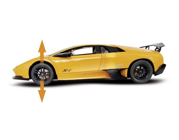 Traditionelle Eleganz zum Nachfühlen: Der Lamborghini Murcielago SV ist das perfekte Modell im Maßstab 1:14 um der prominenten italienischen Automarke nachzufühlen. Durch seine griffigen Reifen, der Vollfederung und dem Differenzial Getriebe liegt der schnittige Sportwagen besonders gut auf der Straße. Ein 2.4 GHz Fernsteuersystem gibt dabei die absolute Kontrolle über das Fahren. Die LED-Beleuchtung sorgt sowohl an der Front als auch am Heck für die perfekte Inszenierung. Die Türen des Lambos können geöffnet werden. Dem Fahrzeug liegen neben dem 7.4 V/500 mAh LiIon Akku und der Fernbedienung auch ein USB-Ladegerät, 2x Senderbatterien LR06/AA und eine ausführliche Anleitung bei.