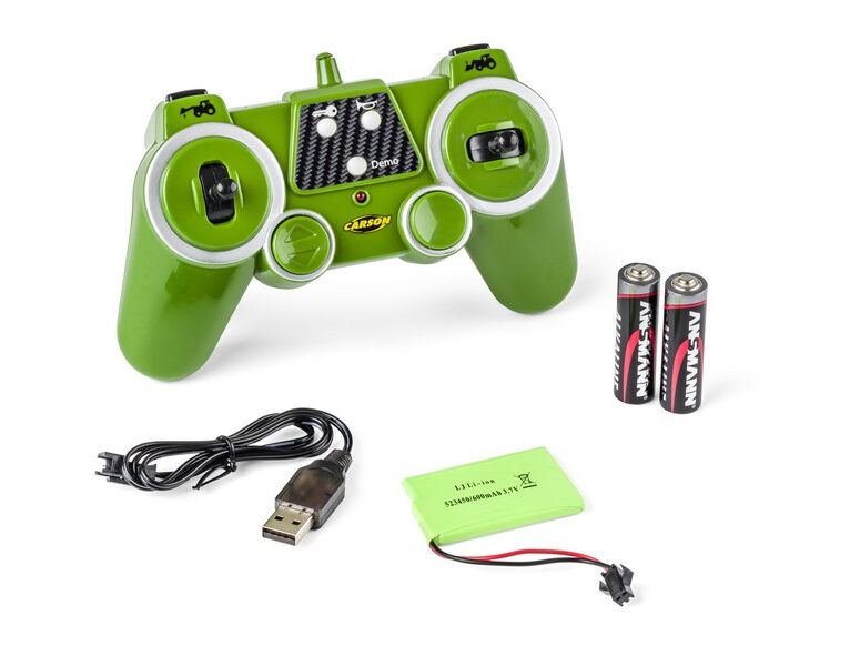 Der Traktor ist mit Sender, Senderbatterien, Fahrakku, Ladegerät und Anleitung voll ausgestattet und nach dem Laden sofort startbereit. Kaufen - laden - fahren!