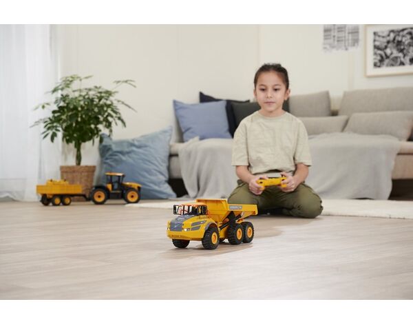 Der 1:20 Muldenkipper Volvo A40G von CARSON ist ein hochwertiger und vielseitiger Spielzeugbagger, der für Kinder ab 8 Jahren geeignet ist. Der Bagger ist eine Nachbildung des originalen Volvo A40G Muldenkippers und verfügt über zahlreiche Funktionen wie das Heben und Senken der Mulde oder die Steuerung von Licht und Sound über den Sender, die es Kindern ermöglicht, ihrer Fantasie freien Lauf zu lassen und eigene kleine Bauprojekte durchzuführen.