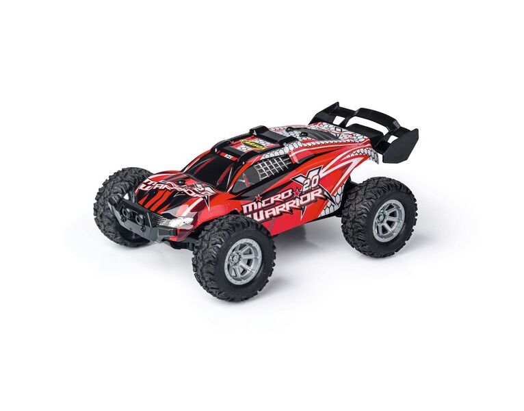 Der Micro X-Warrior 2.0 im Maßstab 1:32 ist die perfekte Mini-Rennmaschine für Haus und Garten. Der einfach zu steuernde 2WD RC-Buggy verfügt über zwei Geschwindigkeitsstufen bis 30 km/h und ist extrem wendig. Dank der griffigen Gummireifen hast du auch auf unebenen Untergründen immer genug Grip. Zum Lieferumfang gehören neben der optisch zum Fahrzeug passenden Sprungschanze eine 2,4 GHz 3-Kanalfernsteuerung, ein LiPo-Fahrakku, Werkzeug und mehrere Pylonen zum Aufbau einer Rennstrecke. Nach einer langen Fahrzeit von 15 min kannst du den kleinen Flitzer ganz bequem per USB-Kabel wieder aufladen. Kaufen – Laden – Fahren!
