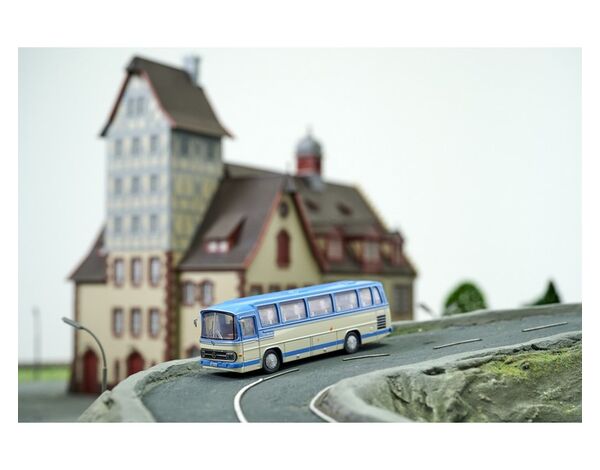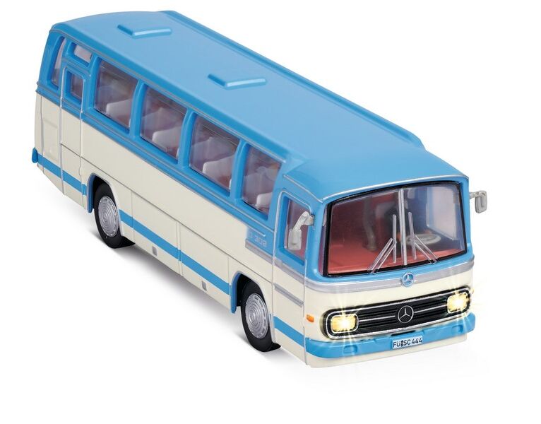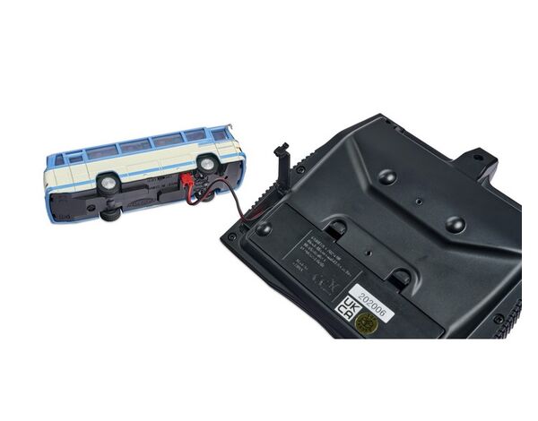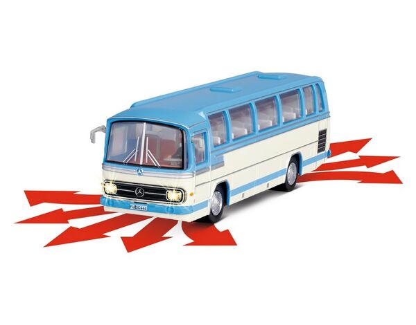 Der O 302 von Mercedes-Benz wurde 1965 vorgestellt, bis 1976 wurden mehr als 32.000 Exemplare gebaut. Eingesetzt wurde der Hochflurbus als echter Allrounder im Stadt-, Überland- und auch im Fernreiseverkehr. Das CARSON-Modell im Maßstab 1:87 verfügt über eine störungsfreie 2.4 GHz Fernsteueranlage, die eine fein abgestimmte Steuerung (digital-proportional) von Gas und Lenkung mit Lenkungstrimmung ermöglicht. Der eingebaute Li-Ion Fahrakku sorgt für eine extra lange Fahrzeit von bis zu 60 Minuten bei nur 30 Minuten Ladezeit. Geladen wird der Mini-Bus über den Power-Plug direkt am Sender.