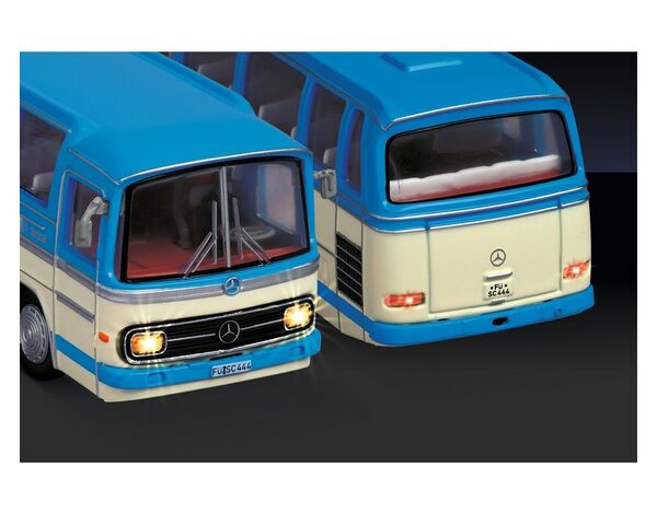 Damit ist der schicke Omnibus stets fahrbereit: auf der Eisenbahnanlage, auf dem Schreibtisch oder auch unterwegs. Die detaillierte Lackierung sowie die funktionierenden Front- und Rückleuchten verleihen dem kleinen Klassiker den letzten Schliff. Das typische Motorengeräusch ist unverkennbar und lässt sich über den Sender ein- und ausschalten. Aufbewahrt werden Fahrzeug und Sender in einer mitgelieferten Vitrine. 4 AAA-Senderbatterien vervollständigen den Lieferumfang zu einem 100 % Komplett-Set. Viel Spaß mit dem Mercedes-Benz O 302! Kaufen – Laden – Fahren!