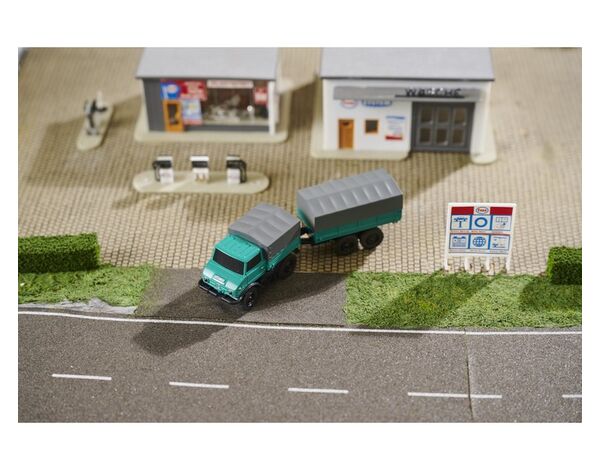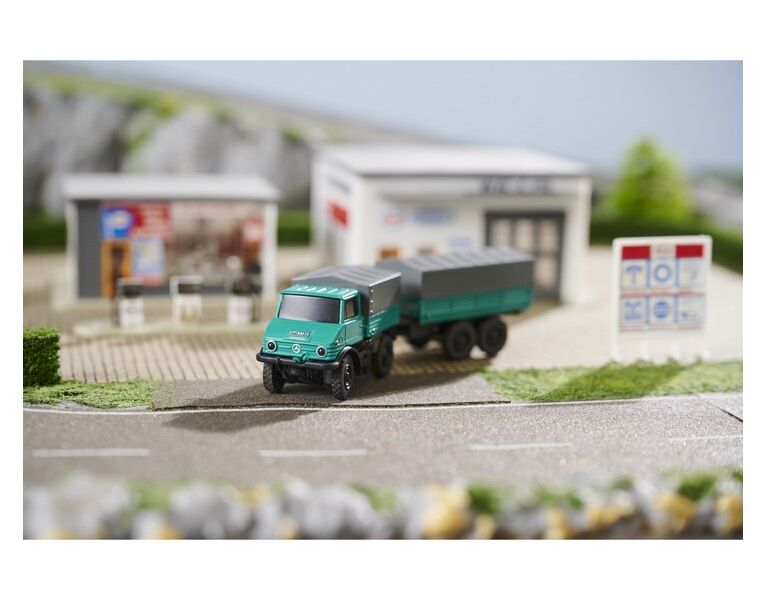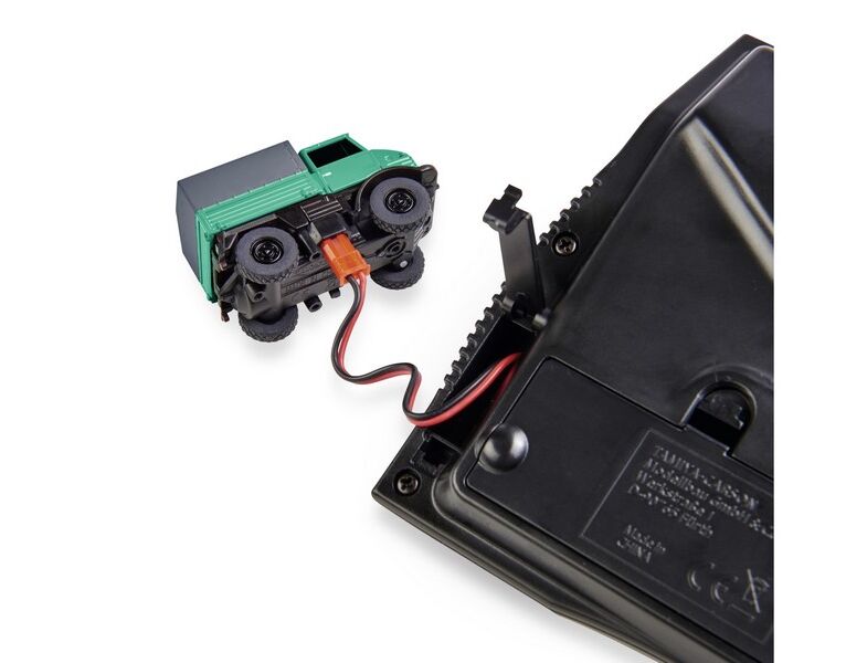 Der neue MB Unimog U406 Forst mit Anhänger von CARSON im Maßstab 1:87 begeistert als absolutes High-Tech-Fahrzeug und bietet sogar eine aufregende Zusatzfunktion. Mit einer störungsfreien 2,4 GHz Fernsteueranlage wird eine präzise Steuerung von Gas und Lenkung ermöglicht. Der Li-Ion Fahrakku ermöglicht bis zu 60 Minuten reiner Fahrzeit bei einer kurzen Ladezeit von nur 45 Minuten. Der Unimog U406 verfügt zusätzlich über ein zuschaltbares Signallicht und eine sehr detaillierte Lackierung. Die technisch designte Fernsteuerung "Reflex Stick Micro" bildet das Bindeglied zwischen Nostalgie und Moderne. Fahrzeug und Sender können in der im Set enthaltenen Vitrine aufbewahrt werden. Mit dem anzubringenden Schlitten bietet sich die einzigartige Funktion, das Fahrzeug auch auf Schienen Spurbreite H0 zu fahren. Das nostalgische Design und die moderne Technologie in Kombination garantieren stundenlangen Spielspaß für Modellbaufans jeden Alters.