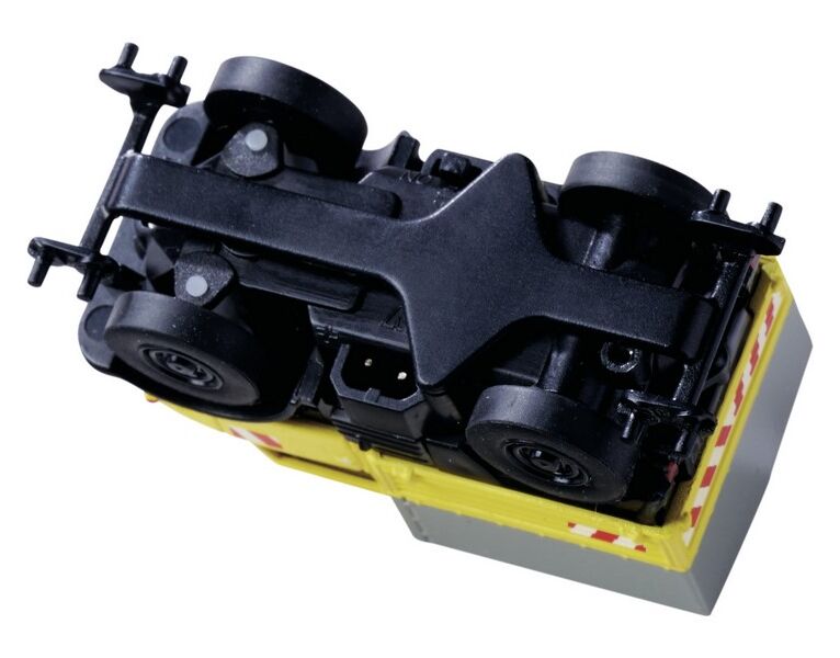 2. Nach Anbringen des Schlittens, kann das Fahrzeug auf Schienen fahren