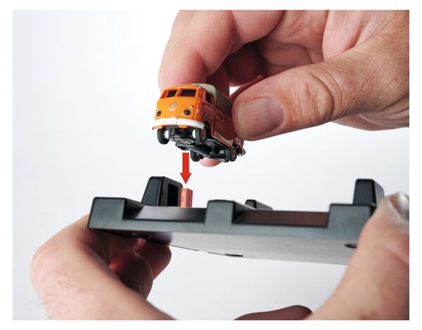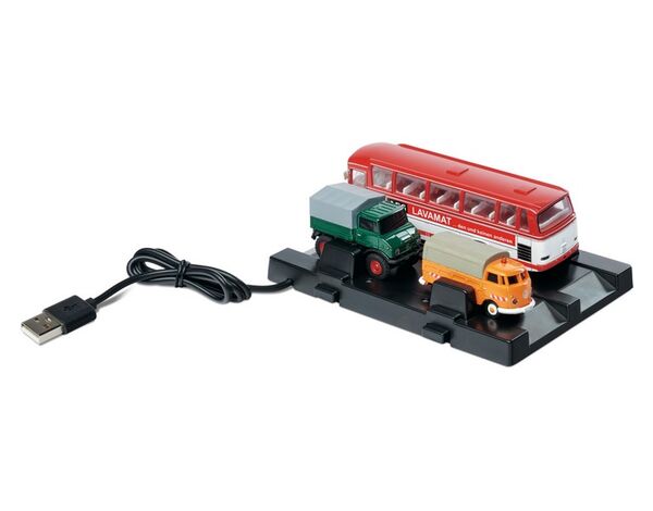 Bis zu vier CARSON 1:87er-Modelle können mit der vierfach USB-Ladestation gleichzeitig aufgeladen werden. Einfach den USB-Stecker der Station mit einem Computer oder einem USB-Adapter verbinden und die Fahrzeuge anschließen.