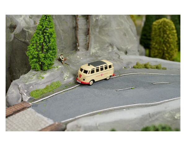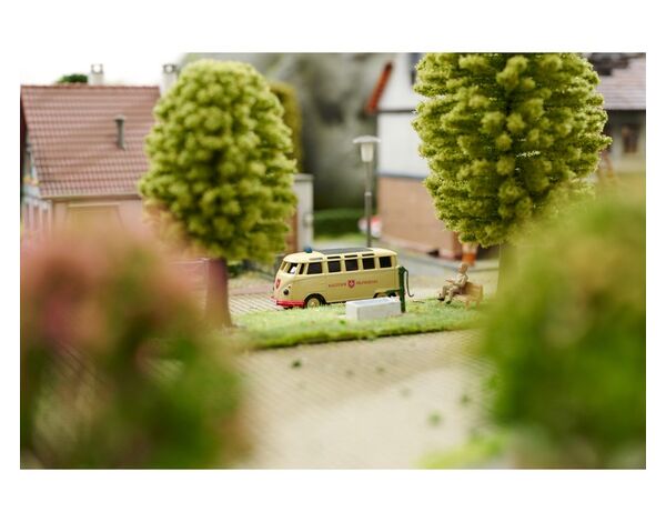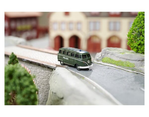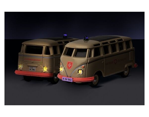 Die ferngesteuerten 1:87er-Modelle VW T1 Polizei und Malteser kommen mit einer Highend-Fernsteuerung mit LCD-Display und zahlreichen Einstellmöglichkeiten (Reverse, Trimmung Geschwindigkeit, Lenkeinschlag). Dank des Modellspeichers für bis zu 15 Modelle wird ein schneller Fahrzeugwechsel auf der H0-Anlage zum Kinderspiel. Der eingebaute Li-Ion Fahrakku garantiert eine Fahrzeit von bis zu 60 Minuten bei einer Stunde Ladezeit und wird über den Power-Plug direkt am Sender geladen. Damit sind die kleinen Transporter auch unterwegs immer fahrbereit. Die funktionalen Front- und Rückleuchten sowie ein integriertes Soundmodul runden die Ausstattung der RC-Transporter ab. Kaufen – Laden – Fahren!