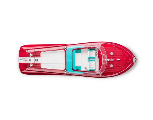 Die detailreich gestaltete Verkleidung mit ansprechendem Führerhäuschen bietet ausreichenden Platz für eine Spielfigur. Dieses Freizeitboot von CARSON erweckt italienisches Urlaubsgefühl und sticht dank der mitgelieferten Batterien sofort in See.
