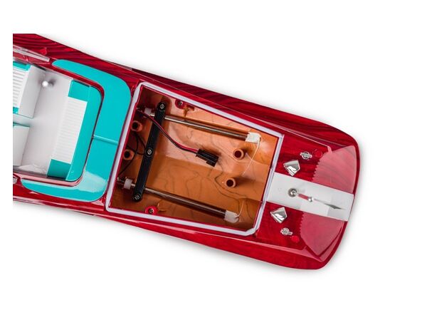 Die ferngesteuerte Luxusyacht ist auf dem heimischen Teich oder auf einem kleinen See gut aufgehoben. Mit bis zu 10 km/h fährt es über das Wasser. Es verfügt über einen Propellerantrieb, der aus Sicherheitsgründen erst anspringt, wenn sich das Boot auf der Wasseroberfläche befindet.