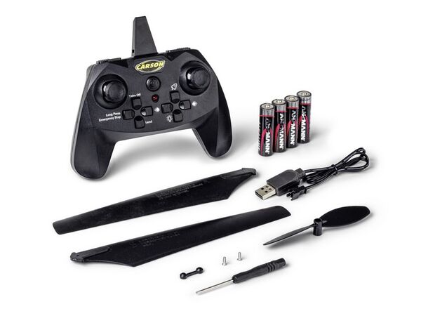 Der Easy Tyrann 670 Rescue von CARSON ist der Action- und Spaßbringer für alle Helifans, sogar für Einsteiger! Easy Handling - Dank elektronischem Start und Lande Funktion lässt sich der Heli kinderleicht und sicher steuern. Mit den 2 verschiedenen Geschwindigkeitsstufen wird die Geschwindigkeit angepasst, so fliegt der Easy Tyrann agiler und schneller. Zusätzlich lassen sich die Lichter des Helikopters über den Sender Ein- und Ausschalten. Chassis und Heckausleger sind aus leichtem und robustem Aluminium gefertigt. Der komplette Lieferumfang des Easy Tyrann 670 Rescue erlaubt den sofortigen Flugeinsatz.