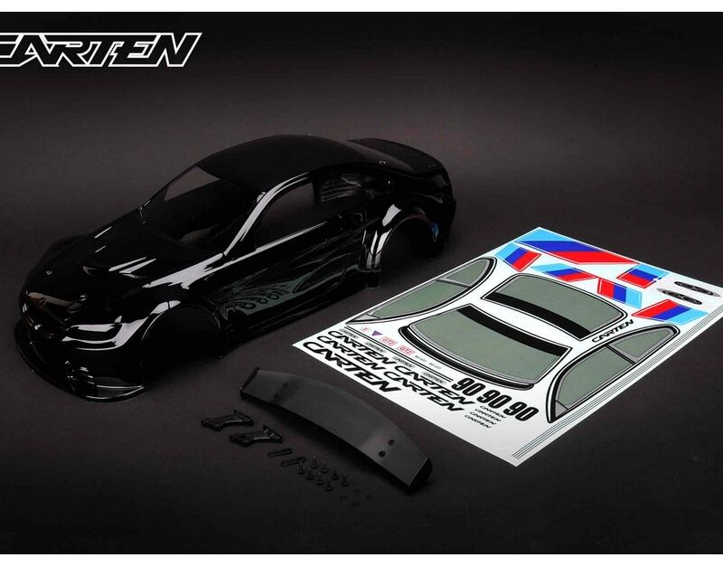 CARTEN GT2 1/10 TC 190mm Karosserie Schwarz Lackiert & Precut inkl. Karosserie Löcher -T410