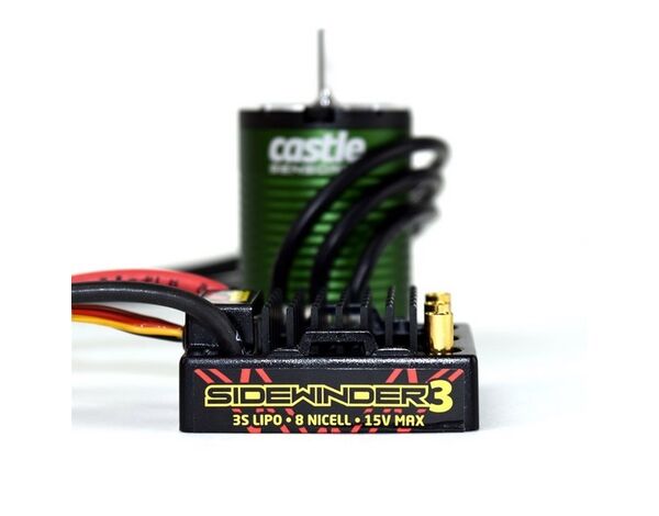 Sidewinder 3 with 1406-6900Kv sensored* brushless motor is the perfect waterproof** combo for 1:10 scale on-road vehicles weighing less than 4lbs running up to 2S LiPo***. It sports updated circuitry for faster response time and improved reliability. This combo now comes with our new sensored* motor. While the sensored capabilities of the motor cannot be utilized with the Sidewinder 3, users will benefit as the sensored motor is rebuildable (parts available soon), and this design even allows modelers to replace damaged motor wires. The Sidewinder 3 Combo will give you exceptional response and performance right of the box!