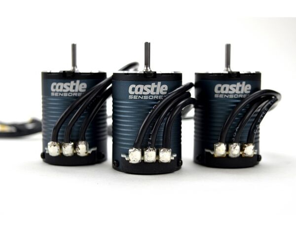 060-0071-00 Castle SENSORED 1406-3800KV FOUR-POLE BRUSHLESS MOTOR For more than a decade Castle has been providing award winning brushless sensorless motors to R/C enthusiasts worldwide. In response to overwhelming requests by our customers, we have brought technological advancements together that will deliver unprecedented performance in our new SENSORED motor Line. Our latest additions are the 1406 series in a "SLATE" color, in 1900KV, 2280KV, 2850KV and 3800KV. These motors are ROCK READY and we have the startup on low RPMs under control. Castle now has you covered if you are looking for ultimate control out on the trails or on your Ultra 4 track days. If you're looking for a higher torque motor for rock racing, hill climbing or hardcore trail running you will want to use the larger, higher torque and power rated 1410 - 3800kv motor. This motor is shorter and will run hotter and have less torque in heavier 4WD applications. Drivers in all applications demand clean starts when
