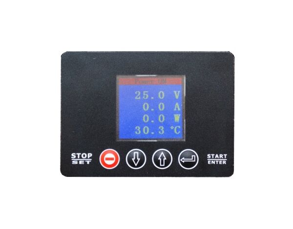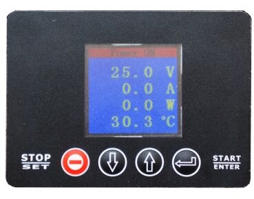 Mit zwei Display als optische Anzeige, Volt und Ampere.