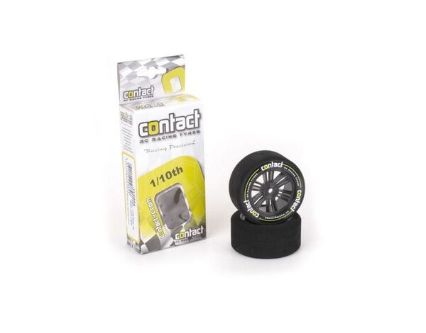 1/10 Foam Tyres Standard Rims: Good for all conditions available in different hardness mounted on Contact white rims suitable for club racers and low-medium grip level.