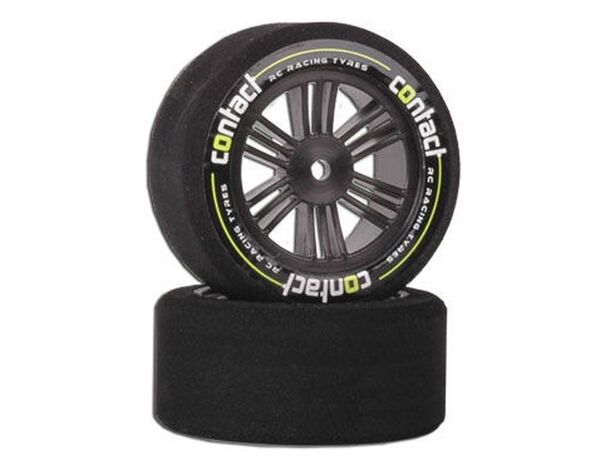 1/10 Foam Tyres Standard Rims: Good for all conditions available in different hardness mounted on Contact white rims suitable for club racers and low-medium grip level.
