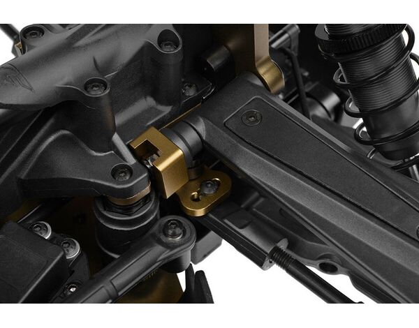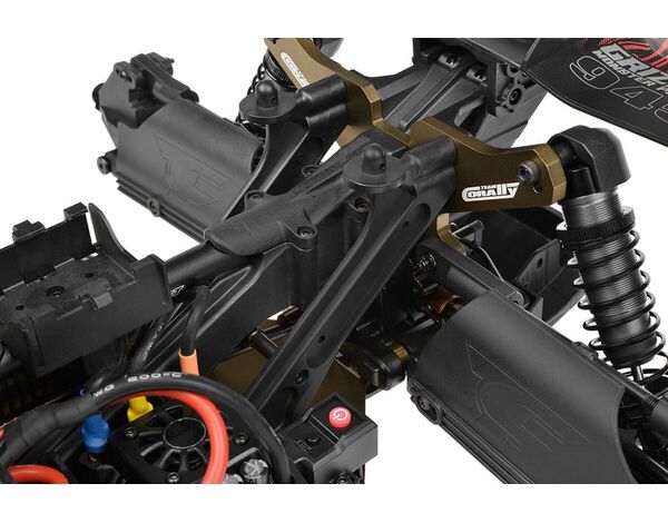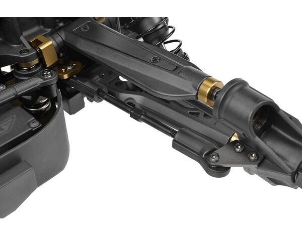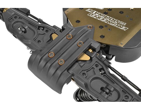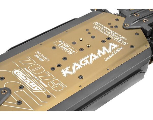Der Kagama Limited Edition verbessert die kampferprobte Leistung des Standard-Kagama, während die bewährten Komponenten intakt bleiben. Viele der Aluminiumteile sind jetzt mit einer einzigartigen Limited Edition-Eloxierung versehen, die ihn zu einem echten Unikat macht. Das Chassis, die Aufhängungsstreben, die Spurstange und die Einstellmutter für die Kugelgelenke sind jetzt mit einer exklusiven Goldoberfläche versehen. Das zentrale Differentialgehäuse, die Radnaben, die Schrauben zur Befestigung der Stoßdämpferfedern und das Servohorn sind hingegen in schlichtem Schwarz eloxiert. Haben Sie sie alle entdeckt?