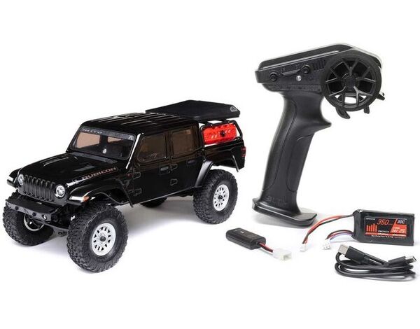 In der Box findest du neben dem zusammengebauten und fertigen Rig einen Spektrum 2,4-GHz-Sender, einen 350-mAh-LiPo-Akku und ein praktisches USB-Ladegerät. Für den Sender sind sogar vier AA-Batterien im Lieferumfang enthalten. Erlebe dein eigenes Überlandabenteuer im RC-Stil mit dem Axial SCX24 Jeep JT Gladiator – ein Fahrzeug, von dem du weißt, dass es für alles bereit ist!