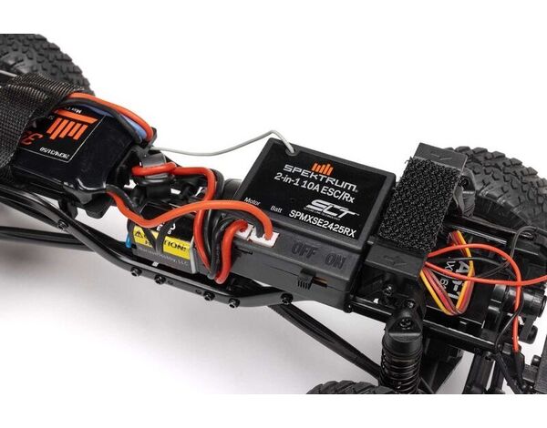 Das Spektrum SLT2 2-Kanal Fernsteuersystem bietet Funktionen wie Gas- und Lenkwegeinstellung und Gaswegbegrenzung. Das RTR-Paket beinhaltet sogar AA-Senderbatterien