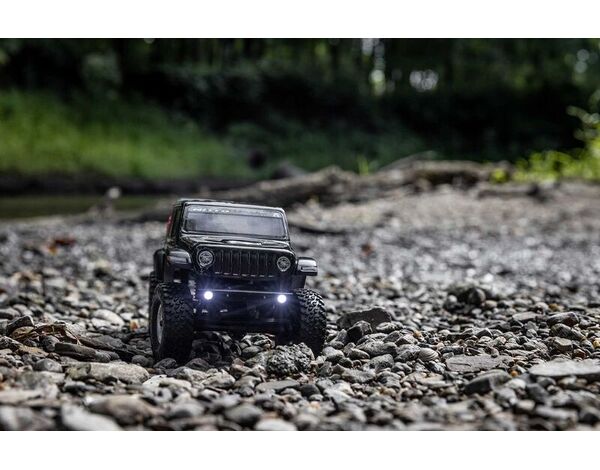 Der SCX24 Jeep Gladiator fährt wie ein Champion und sieht auch so aus. Die realistische, vorbildgetreue Karosserie, die in zwei neuen Farben erhältlich ist, fährt auf lizenzierten KMC Machete Felgen und Nitto Trail Grappler Reifen. Zwei LEDs in der vorderen Stoßstange erhellen den Weg beim nächtlichen Crawlen. Für einen schnellen Akkuwechsel genügt es, einen Clip zu entfernen, um die Karosserie nach hinten zu klappen.