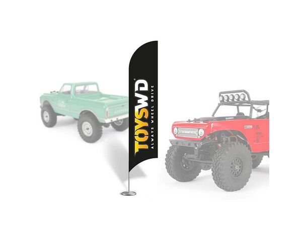 7" high black ToysWD textile flag with 9" aluminium mastil.