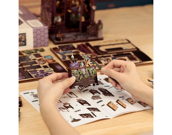 Gefertigt aus hochwertigem, detailbedrucktem Holz, überzeugt das Set durch präzise Passform und eine edle Optik. Dank der bebilderten Schritt-für-Schritt-Anleitung lässt sich dein Book Nook ganz einfach zu Hause zusammenbauen – perfekt für Bastelliebhaber, Kreative und alle, die Freude an feinen Details haben.