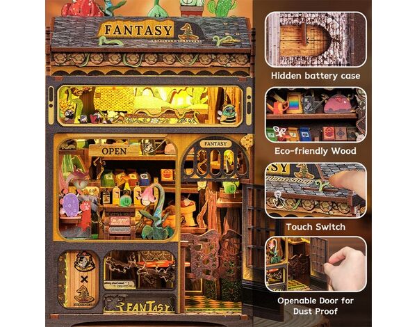 Gefertigt aus hochwertigem, detailbedrucktem Holz, überzeugt das Set durch präzise Passform und eine edle Optik. Dank der bebilderten Schritt-für-Schritt-Anleitung lässt sich dein Book Nook ganz einfach zu Hause zusammenbauen perfekt für Bastelliebhaber, Kreative und alle, die Freude an feinen Details haben.