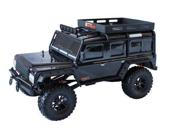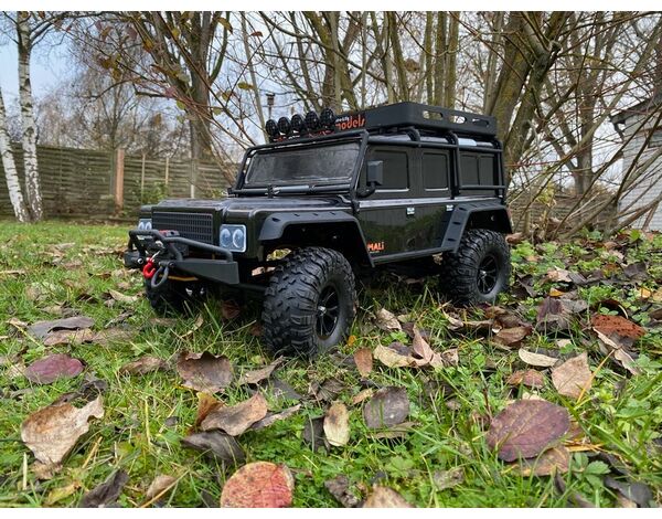 Die 2023-Edition ist mit einem speziellen, LiPo-tauglichen, Crawler Regler sowie einem Spezial-Crawler-Motor ausgestattet. Die Starrachsen mit Metall-Differentialsperren trotzen jedem Gelände und lassen die unmöglichsten Fahrmanöver im Gelände zu. Die robusten Alu-Karosserieaufnahmen, die nun zusätzlich mit Alu-Profilen verstärkt wurden, verleihen dem Modell zusätzliche Steifigkeit. Öldruckstoßdämpfer mit Aluminiumteilen geben dem Modell die richtige Federung. Das per Fernsteuerung schaltbare 2-Gang-Getriebe lässt zügiges Fahren oder sehr langsames Crawlen zu. Die maximale Spitzengeschwindigkeit ist zudem per Dual-Rate an der Fernsteuerung von 0 – 100 % stufenlos einstellbar. Ein Metallgetriebe-Lenkservo steuert Ihr Modell immer präzise wohin Sie wollen. Ebenfalls über die 5-Kanal-Fernsteuerung schaltbar ist die bereits eingebaute NEUE LED-Beleuchtung mit Blinkern, Bremslicht usw. Die im Sondermodell verbaute Seilwinde mit Stahlseil kann ebenfalls per Fernsteuerung bedient werden (Vor-/ Rückwärts). Viele Zubehörteile (optional erhältlich) wie z. B. eine Allradlenkung lassen viel Spielraum, um das Modell zu individualisieren und zu tunen. Das Modell ist Ready To Run und wird mit einer 5-Kanal 2,4 GHz Fernsteuerung, NiMH-Akku und Steckernetzlader geliefert. Eine Fahrzeit von über 60 Minuten ist mit dem DF-4J möglich.