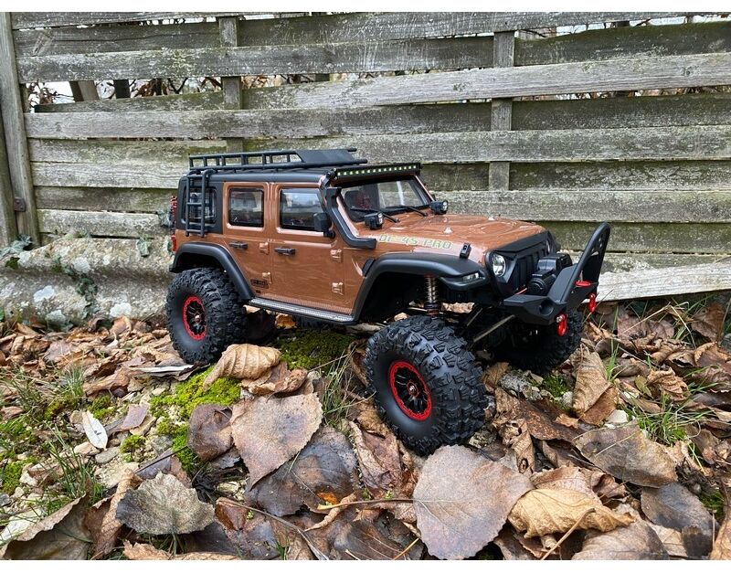 Der DF-4S PRO Crawler von DF Models ist ein High-End Crawler der Spitzenklasse mit 313mm Radstand. Unter der mit einem Magnetverschluss am Chassis befestigten aufklappbaren Scale-Karosserie mit vielen Details und Anbauteilen sowie einer Fahrerfigur und Cockpit (Modelle No.3152, 3153, 3154, 3164), verbirgt sich das Stahlrahmenchassis. Beim Modell No. 3163 ist eine Hartkunststoff Scale-Karosserie, mit vielen Details und Anbauteilen sowie ein voll ausgebautes Cockpit und Türen, die sich öffnen lassen. Metall-Verstrebungen und Lenkstangen liefern die nötige Stabilität. Senkrecht verbaute Voll-Aluminium-Öldruckstoßdämpfer liefern perfekte Performance in jedem Gelände. Das schaltbare 2-Gang-Getriebe lässt langsames Crawlen (ca. 3 km/h) und zügiges Fahren (ca. 13 km/h) zu.
